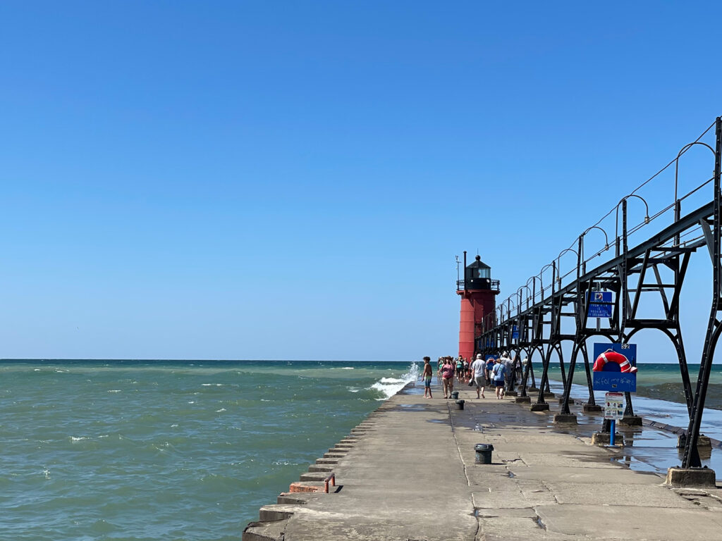 We arrived in South Haven, MI around noon. The crowds are my least favorite things in the world (again – holiday weekend), but the lighthouse did not disappoint. It was red, gorgeous and tall, a beautiful destination at the end of the pier.